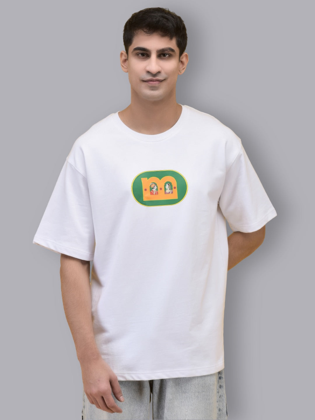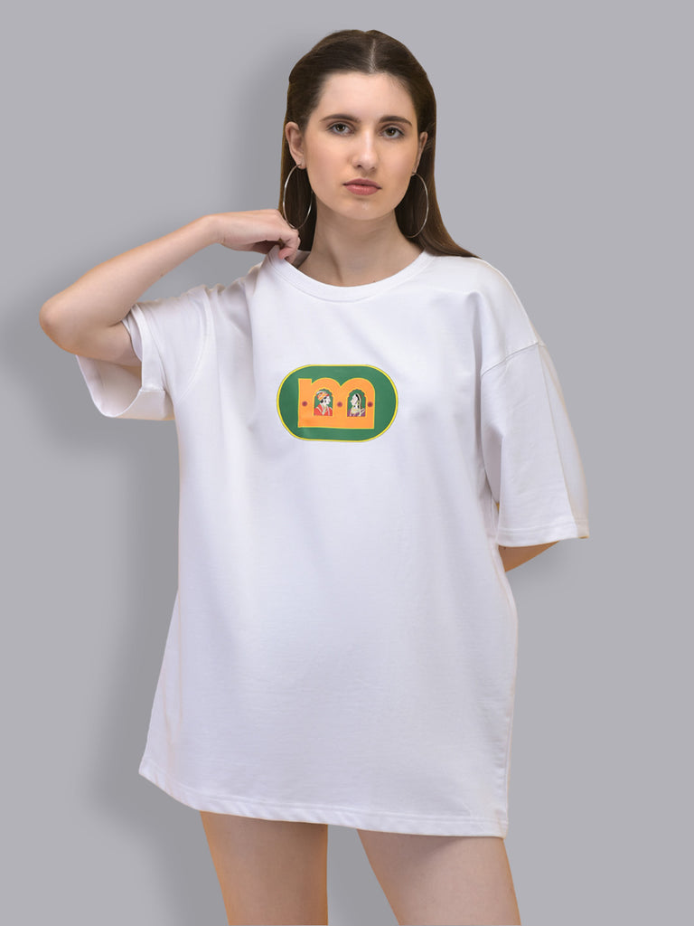 In a pure, pristine white, this tee is adorned with an intricate Raja Rani motif, meticulously crafted to embody the grandeur and grace of royal love. The design seamlessly integrates with the Melangebox brand’s ethos, celebrating the profound ideology of love through artful craftsmanship.