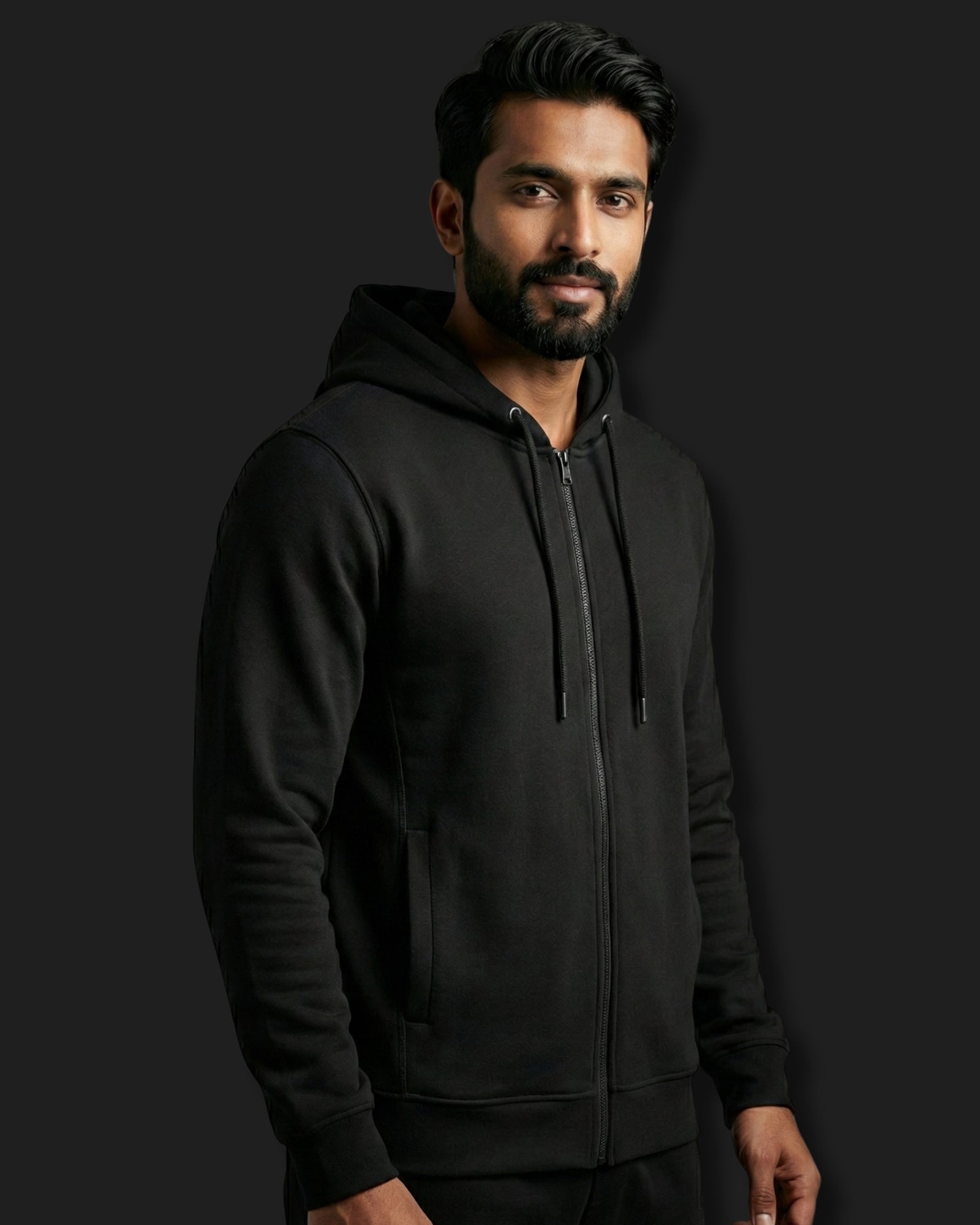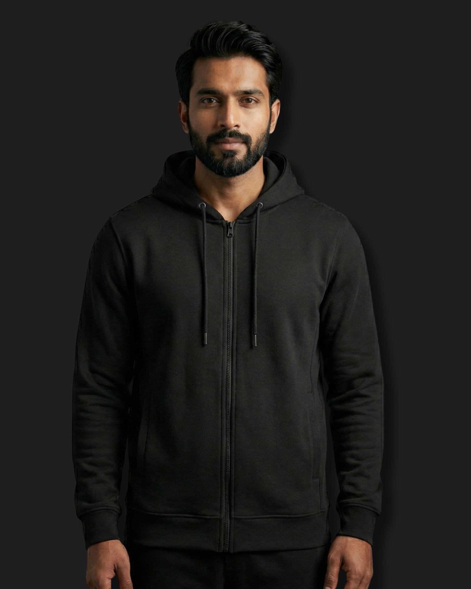 Premium Black Zip Hoodie | 320 GSM Cotton Fleece & YKK Zipper – Melangebox India
