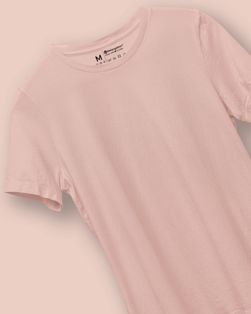 Half Sleeves Crew Neck: Solid Peach
